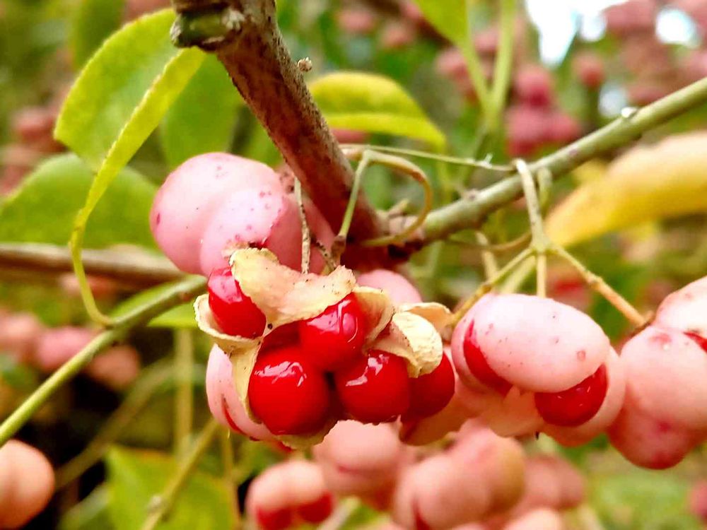 お出かけ先,朝の散歩道,マユミの実の投稿画像