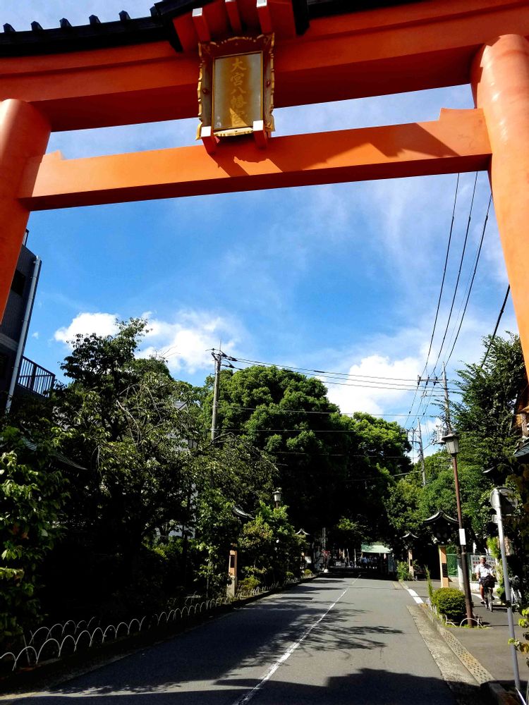 昨日、訪れた大宮八幡宮の大鳥居と参道。