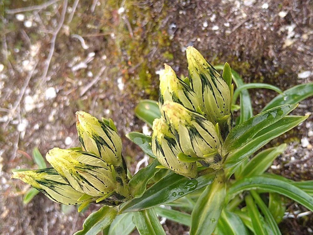 高山8月のリンドウでも9月ともなれば、もう開かない花筒の中(温室)で種子育成中 2022.8.30 南ア鳳凰山観音岳