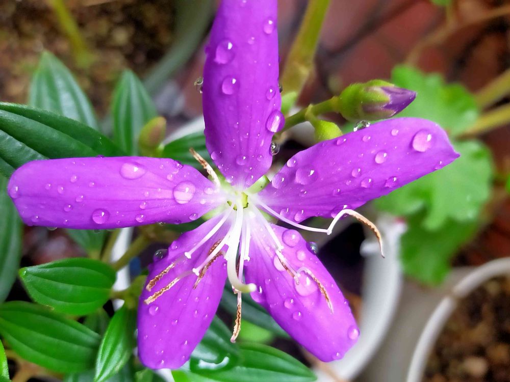 やっとお花が咲いたあと思ったら、今朝は朝からザーザー降りと、⚡と…😨