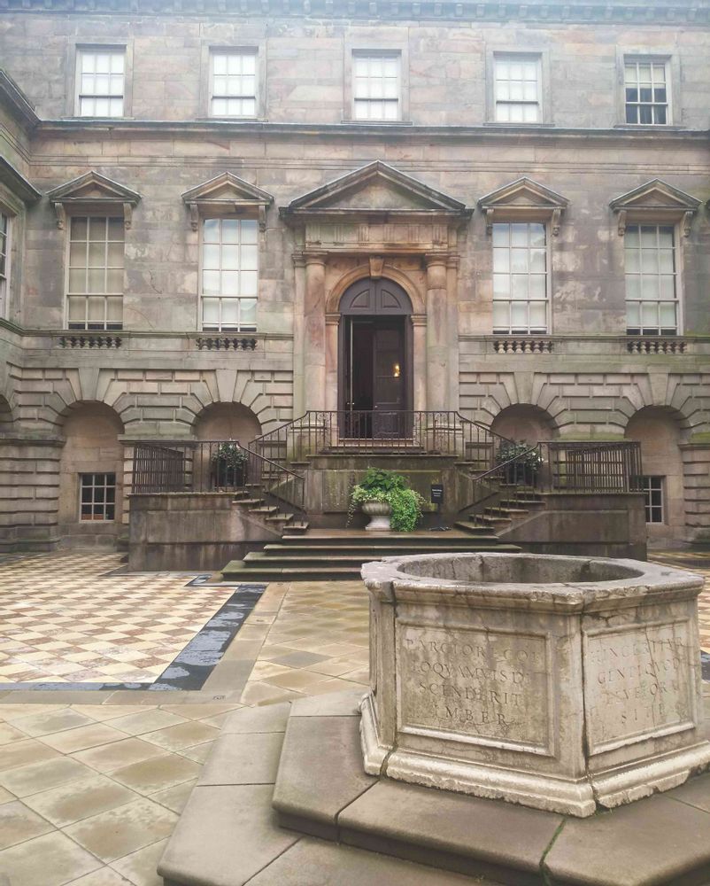 シンメトリーの建物、左側の床の模様まで素敵✨