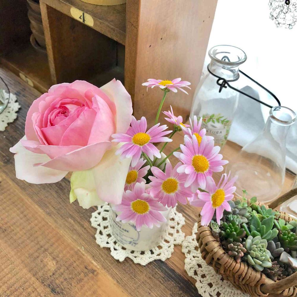 お花、雑貨、ハンドメイドが好きです。 バラと多肉植物、あじさいをメインに育ててます。
