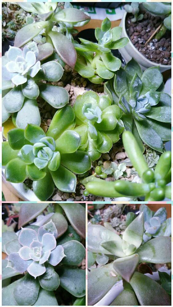 真ん中のエレガンスとメキシカンスノーボールも成長点の若い葉が茎伸ばして独立してるような姿。