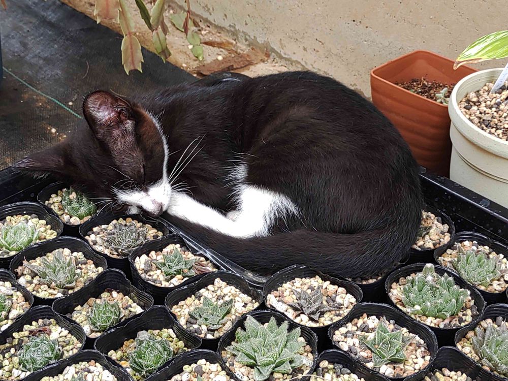 ニャンコ、サボテンのトゲトゲ🦔鍼級感覚でつかね🤣