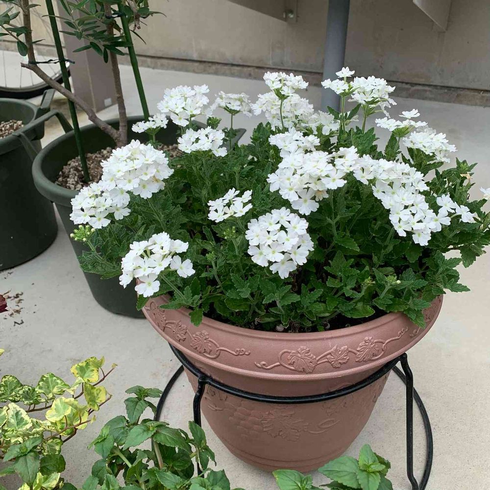 酷暑を乗り越えて、綺麗に咲いてるねー❣️白いバーベナって やっぱりいいな😆