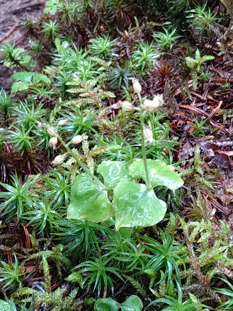 亜高山帯針葉樹林の下草、苔の間に個性的なランが、ありました。既に花は終わり。南ア鳳凰山観音ヶ岳登山道 2022.8.30
