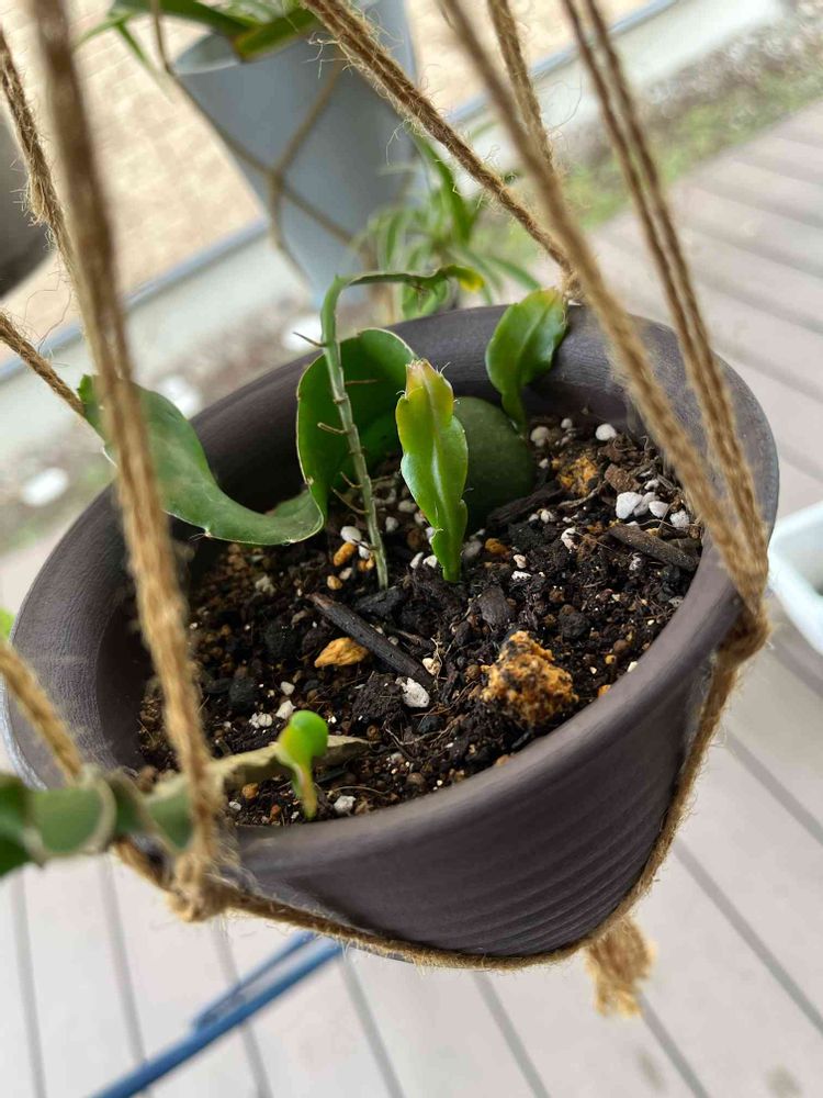 ミニドラゴンフルーツは無事根付いたようで、小さな新芽が出てきました。思ったより暴れない、、これからかな