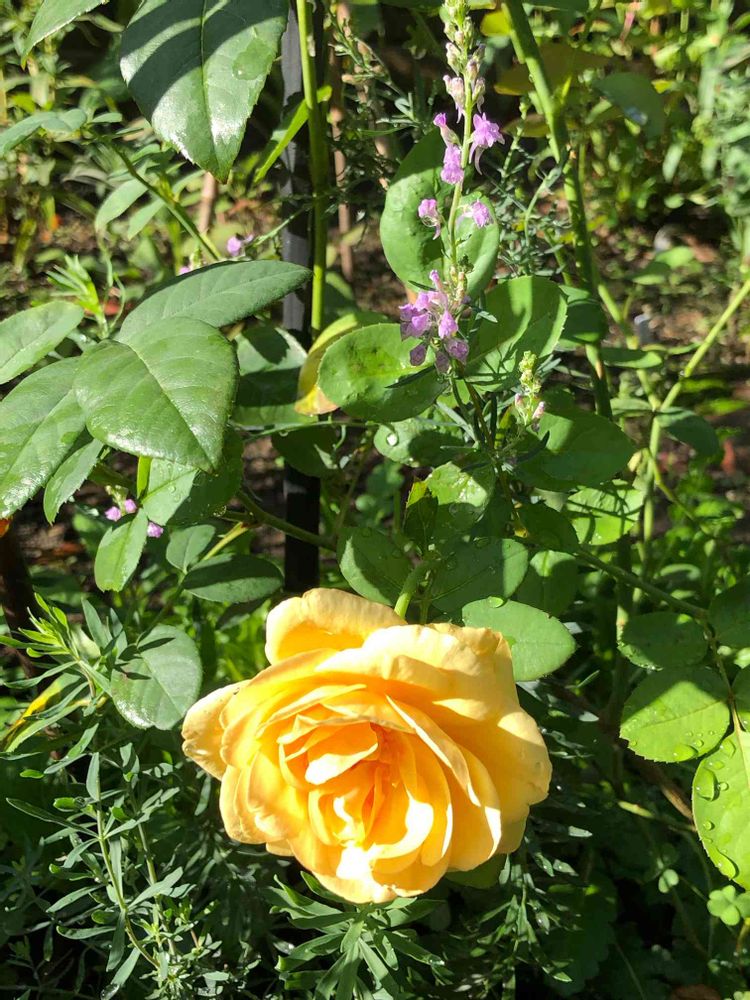 雨でバラの花も傷み気味ですが、グラハムトーマスは一際元気❣️