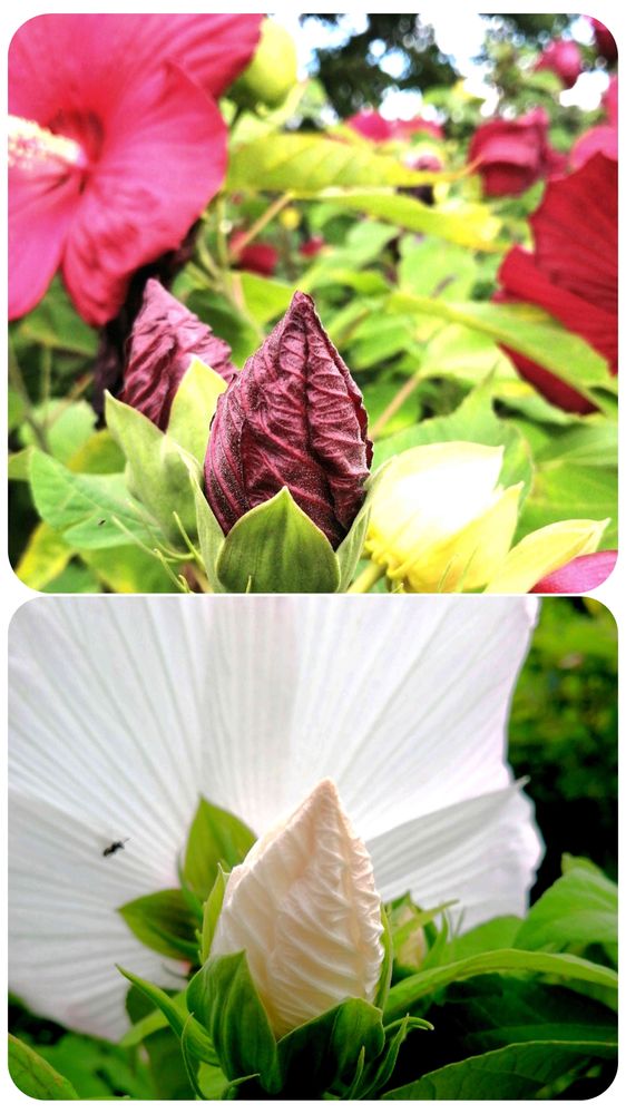 セイヨウフヨウのワインレッドとスーパーホワイトです
