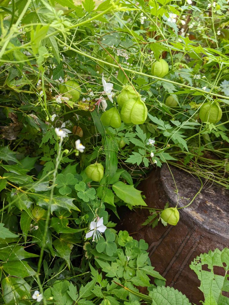 今日の花🌼フウセンカズラ。昨年植えた種より今年も開花。種が拡散して、アチラコチラにと。😱🌱