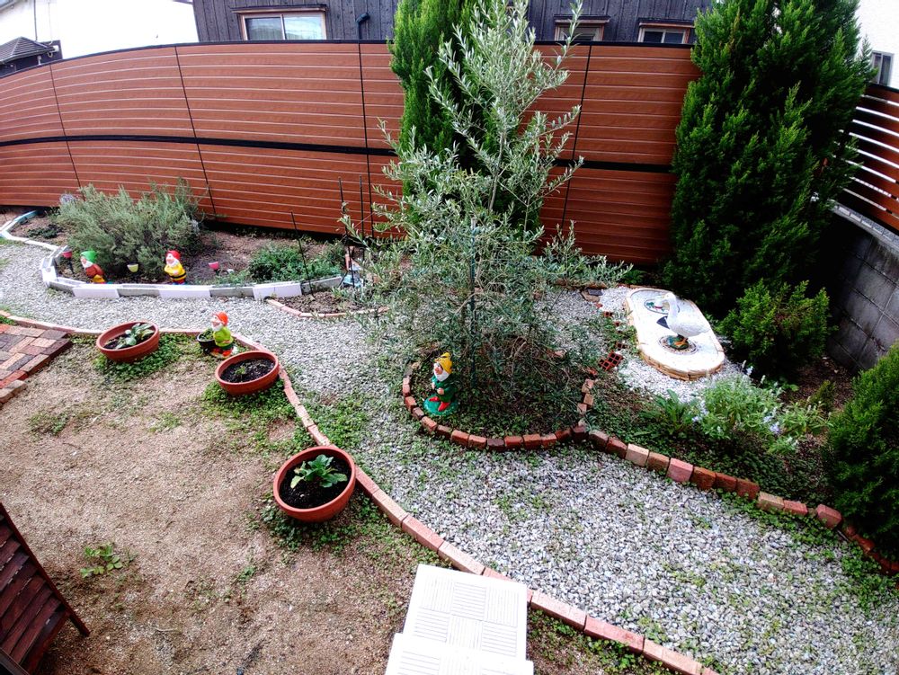 オリーブもだんだんと大きくなってきて、砂利道を歩くときにちょーっと邪魔になるので剪定せねば🎵