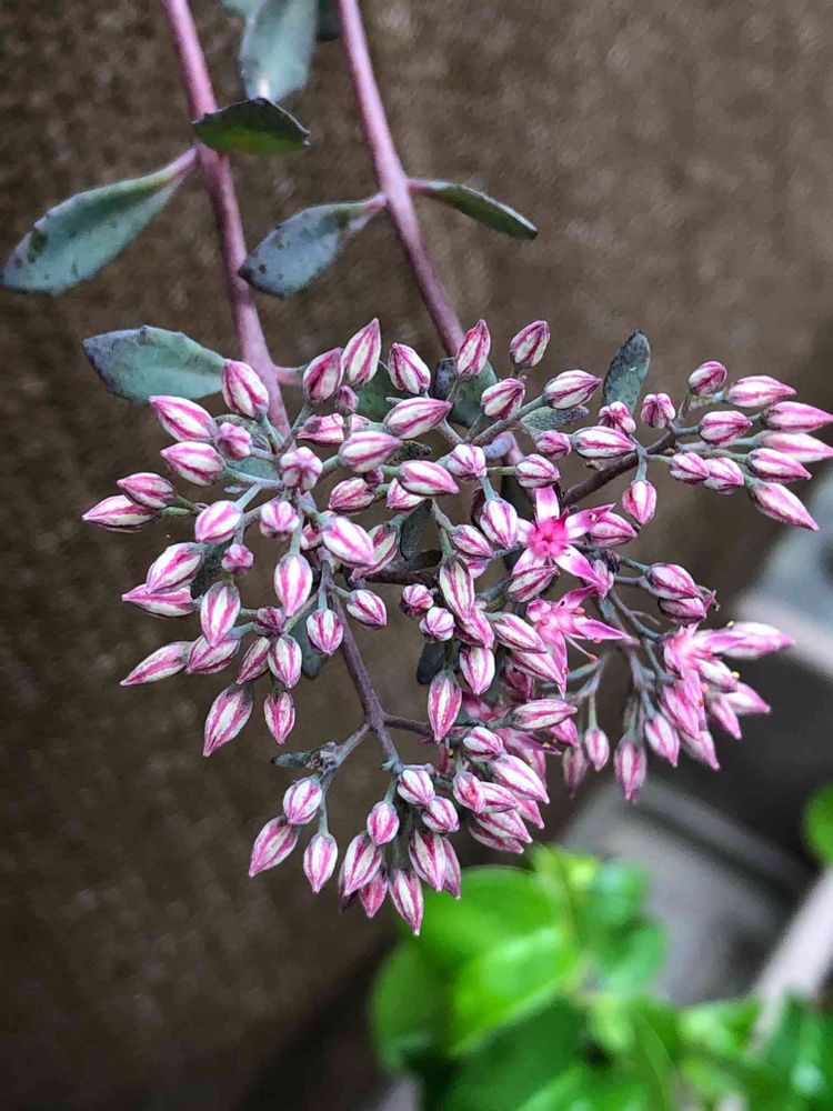 初めまして!コメントありがとうございます😊ニョロンと伸びた花茎の先端に咲きます銅葉にピンクがいい感じです❤️