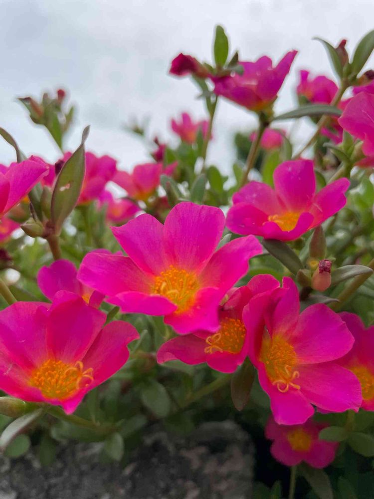 台風前の不気味な空でしたが、ポーチュラカの明るさが映えてました🎶