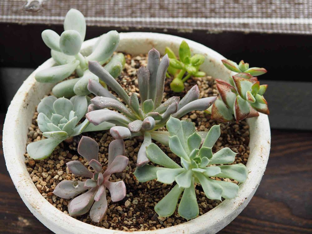 徒長したり傷んだ多肉を一つの鉢に寄せ植えにしました。