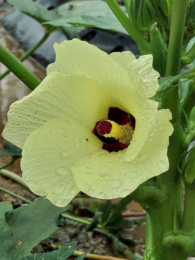それでも綺麗な花を咲かすオクラ、ますます食べてあげたくなる⁉️😋