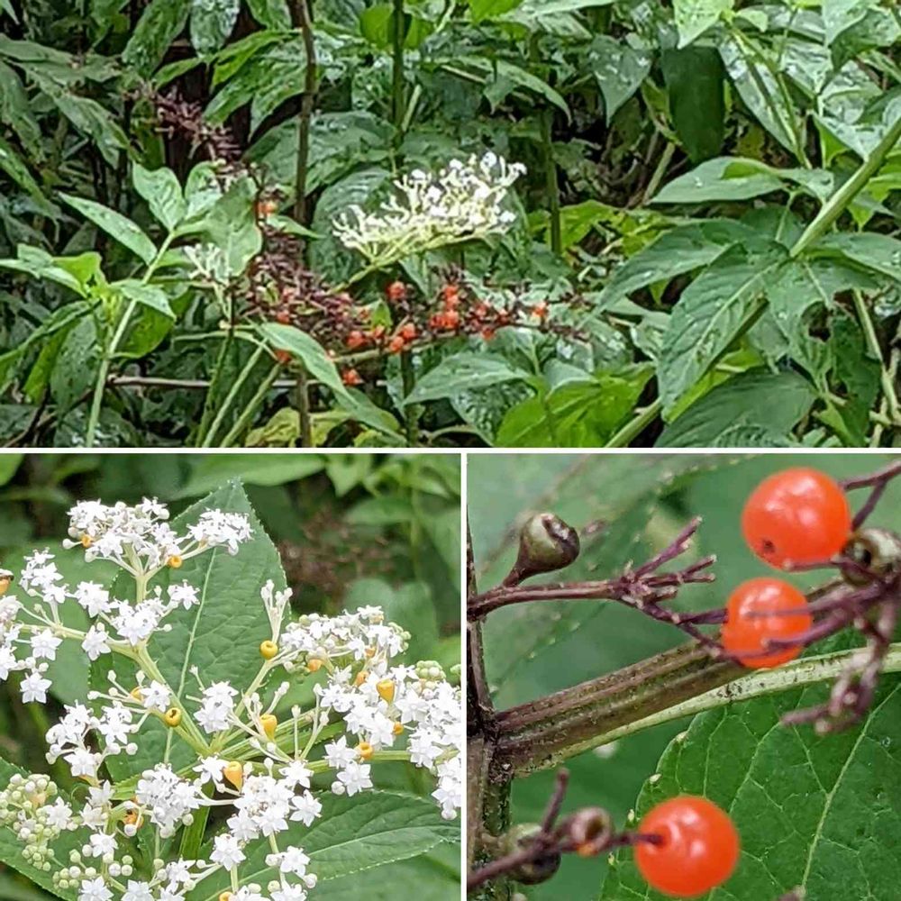 静かな杉林の中に群生していた満開のソクズの花(7/22)に、ツヤツヤした赤い果実がついていました🔴🌿