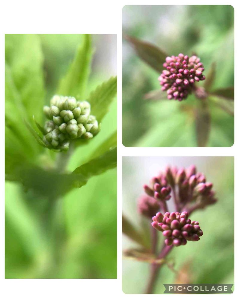 秋の七草の一つ、フジバカマの白とピンクの蕾が色づいてきました。