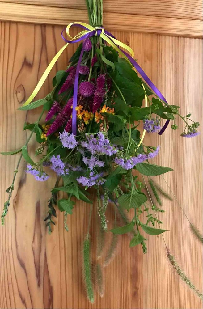 庭で、沢山咲いている、ユーバトリウムを飾りたいと、思いスワッグを作りました。