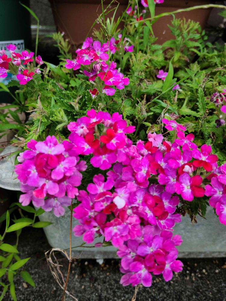プランターに植えてるビジョザクラが復活 右側は咲いてません😆 今から咲くのかな楽しみです😆✨🎵🎶