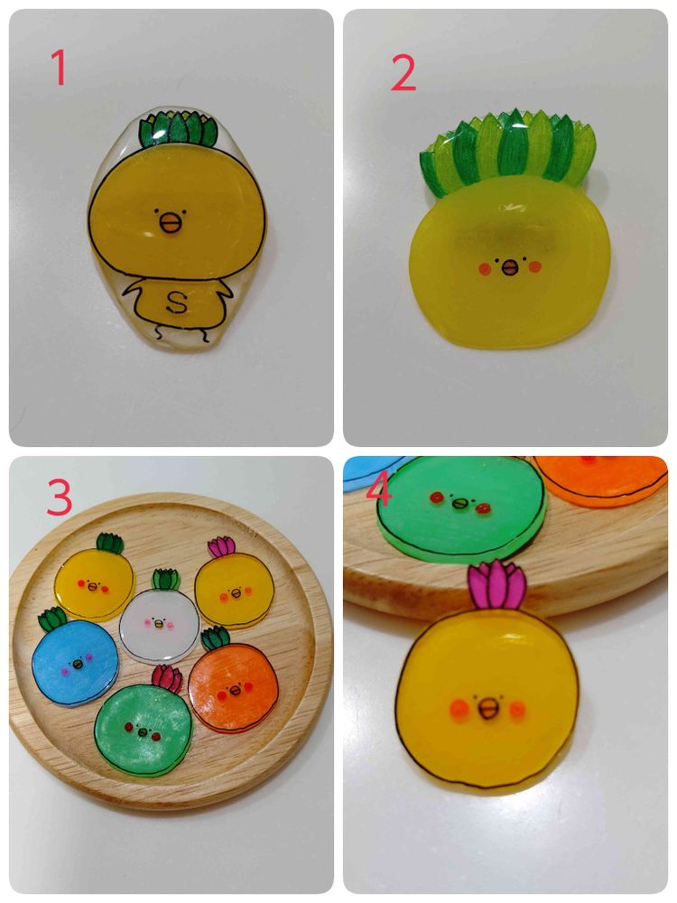 さま レジン液てゆうのでアクセサリー作れるんです。キーホルダーとかね。今回はプラバンで出来た所へ塗るんですが。。