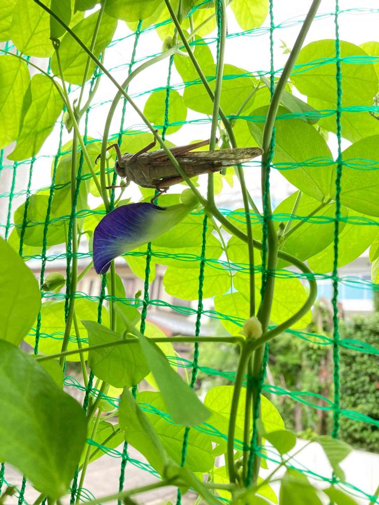 今朝家のグリーンカーテンを観ていたら、遂にバタフライピー が青い花を咲かせていました🎶