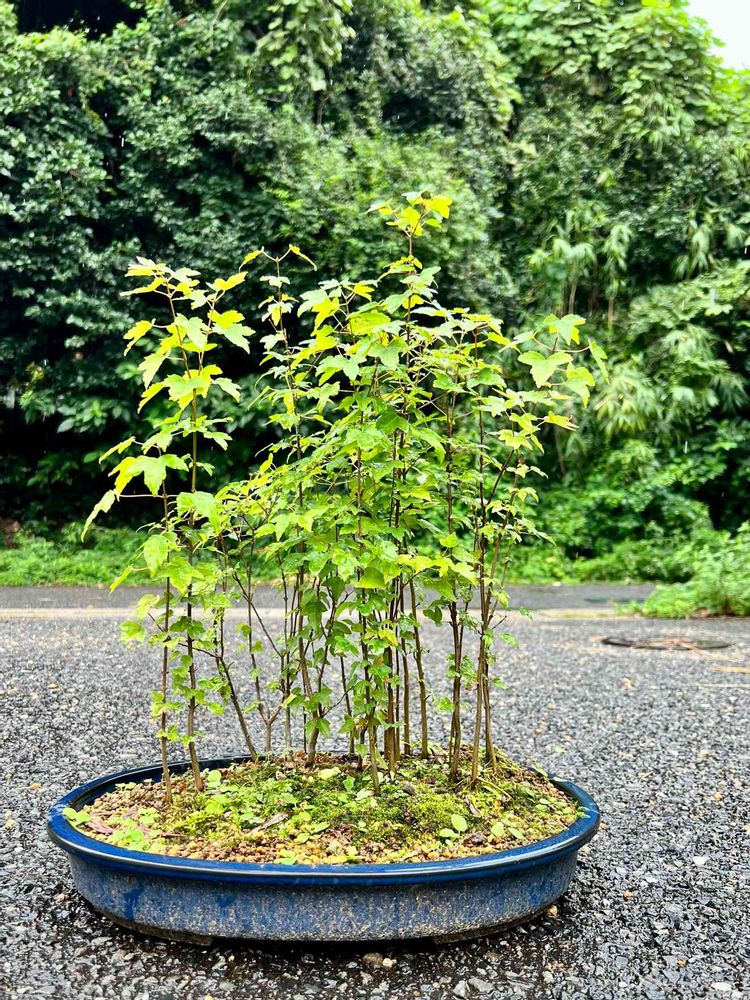 トウカエデの実生寄せ植え。そろそろ木の高さをいろいろ整えてみようかな。それにしても、鉢が泥だらけ‥😮💨