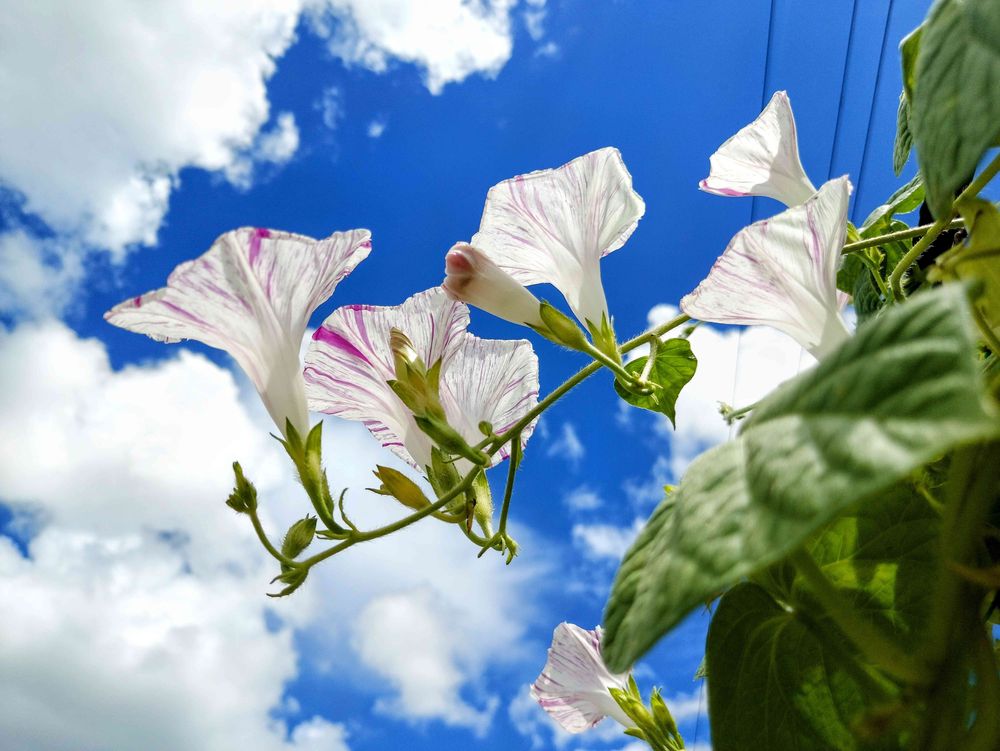 西洋朝顔🤍と白い雲🤍そして青空💙