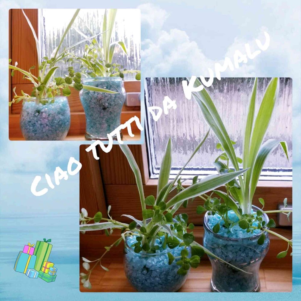 ダイソーで買ってきたオリヅルランとピレア 水耕栽培にしてみた。