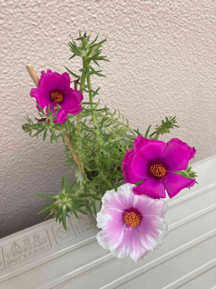この松葉牡丹🌸毎日大きなお花を一個か二個咲かせてくれます😊 三個一度はめずらしいかな?