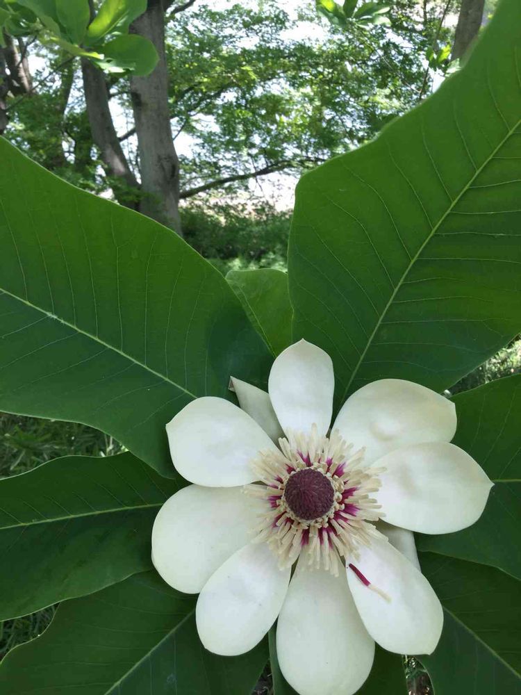 とてもいい匂いがする大きな花。木も葉も大きく綺麗だったので思わず撮影。この植物の名前は?