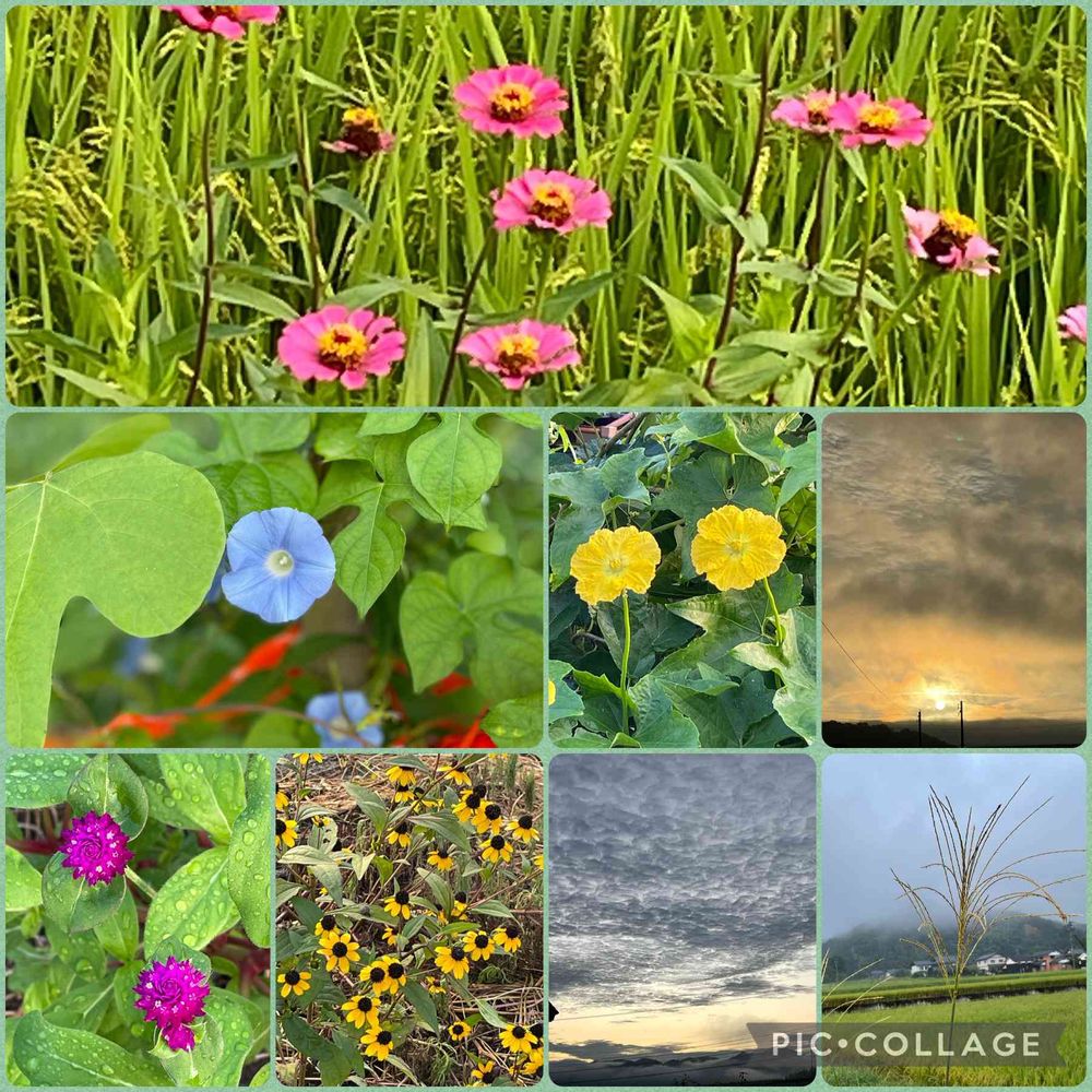 朝散歩で、可愛いお花に沢山出会えたんですね。朝焼けの空、素敵ですね〜🧡🧡