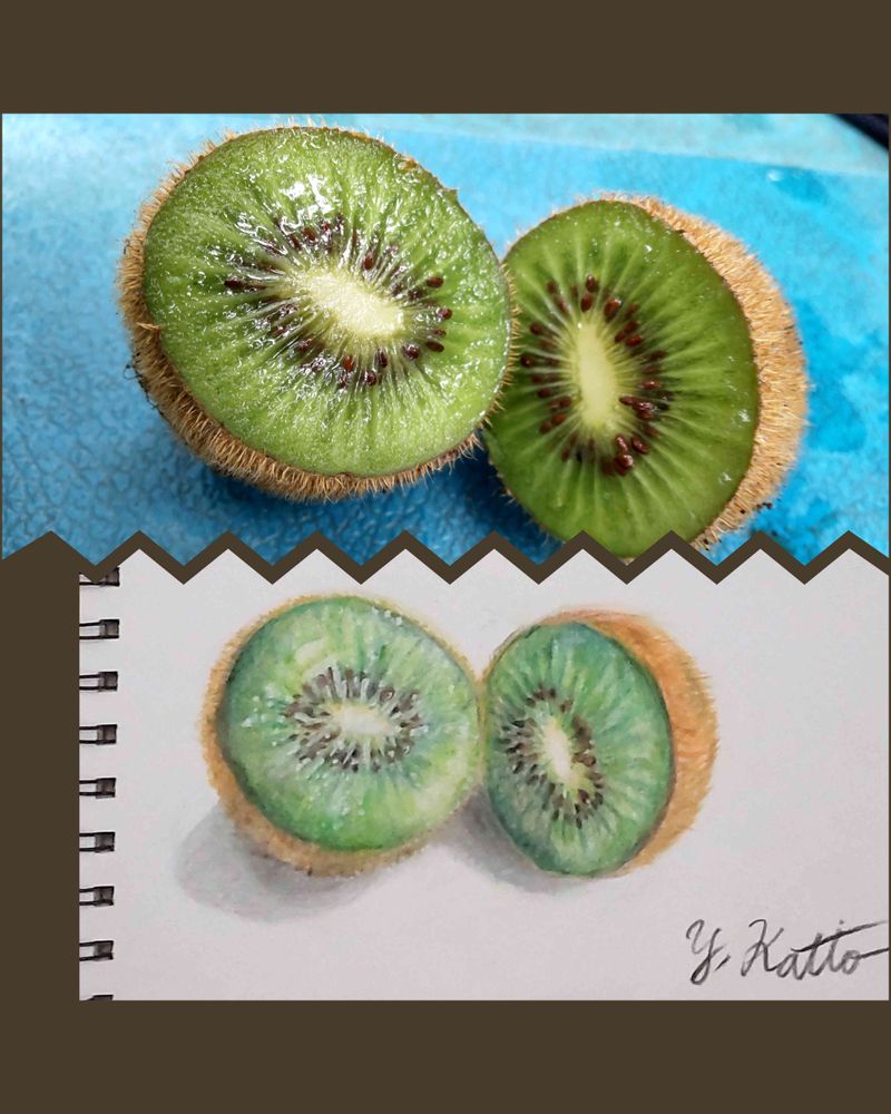 まだ収穫には早いのですが 落ちていた物を切って描いてみました🥝✍️