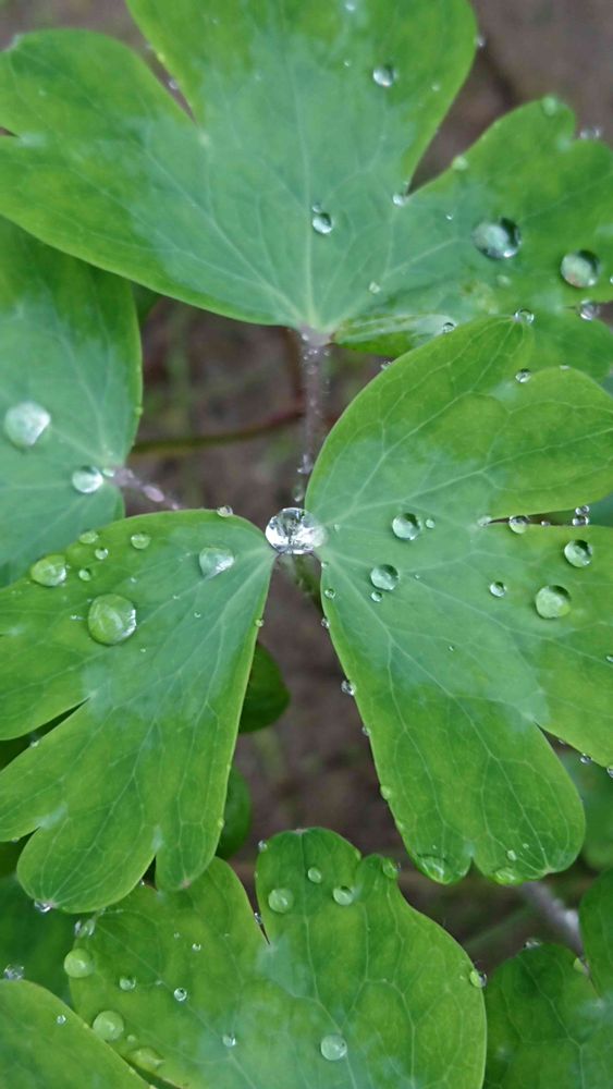 セイヨウオダマキ。('-'*)オハヨ♪水滴が綺麗ですね🌿