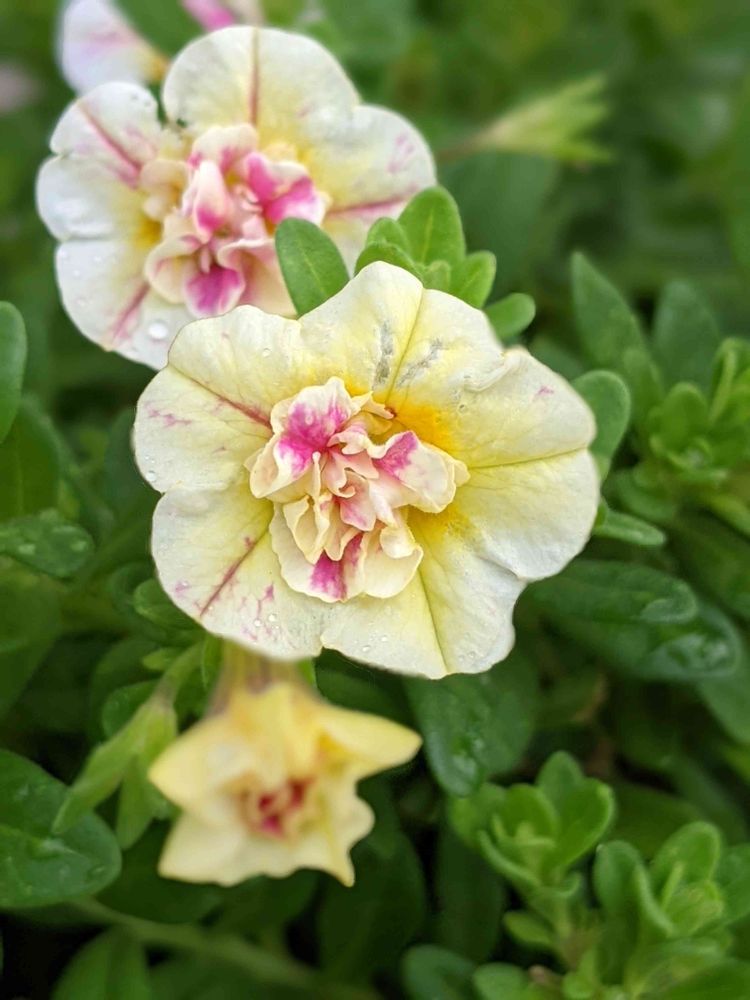優しいレモン色で真ん中のピンクが可愛らしい八重のカリブラコアさんですね.•*¨*•.¸¸♬⭐️🌸⭐️🌸⭐️✨💖💛