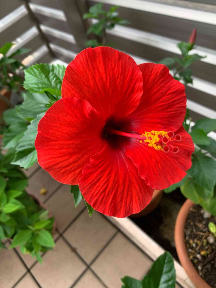 バルコニー/ベランダ,ハイビスカス,赤い花の投稿画像