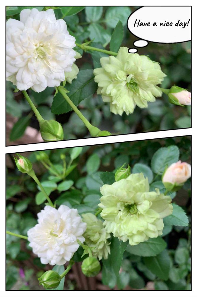 去年は何だかグリーンにならず白いお花ばかりでしたが今年はいい感じに