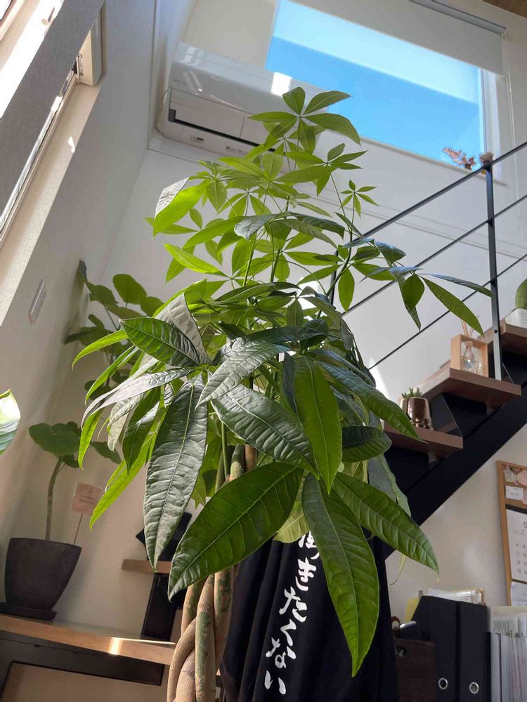 ぼわっとひろがってたパキラがキュッと葉を引き締め始めたんだけど、なんでなんだろう?😳