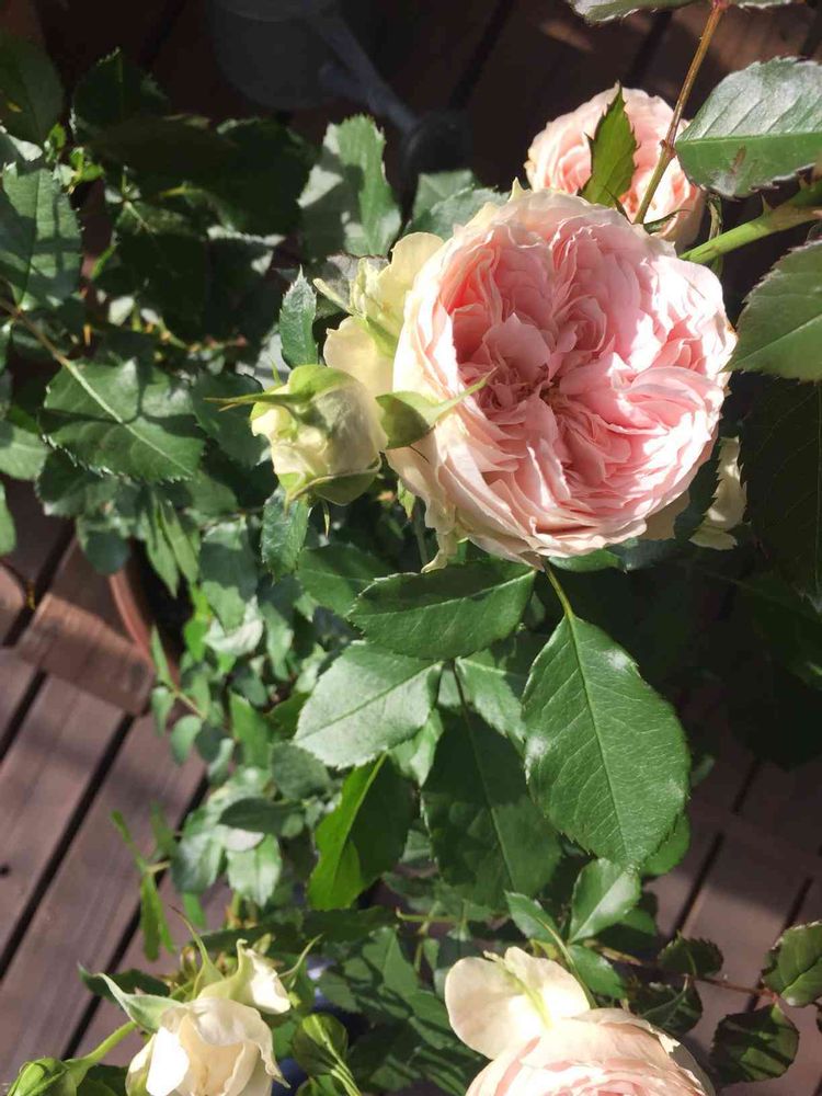 自宅のウッドデッキでのんびりと寄せ植え作って遊んでいます。
