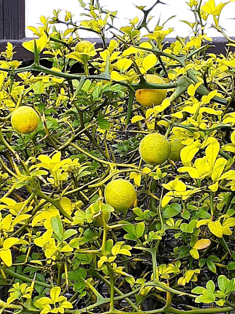 大きな黄色い実が鋭いトゲに守られていました🍊