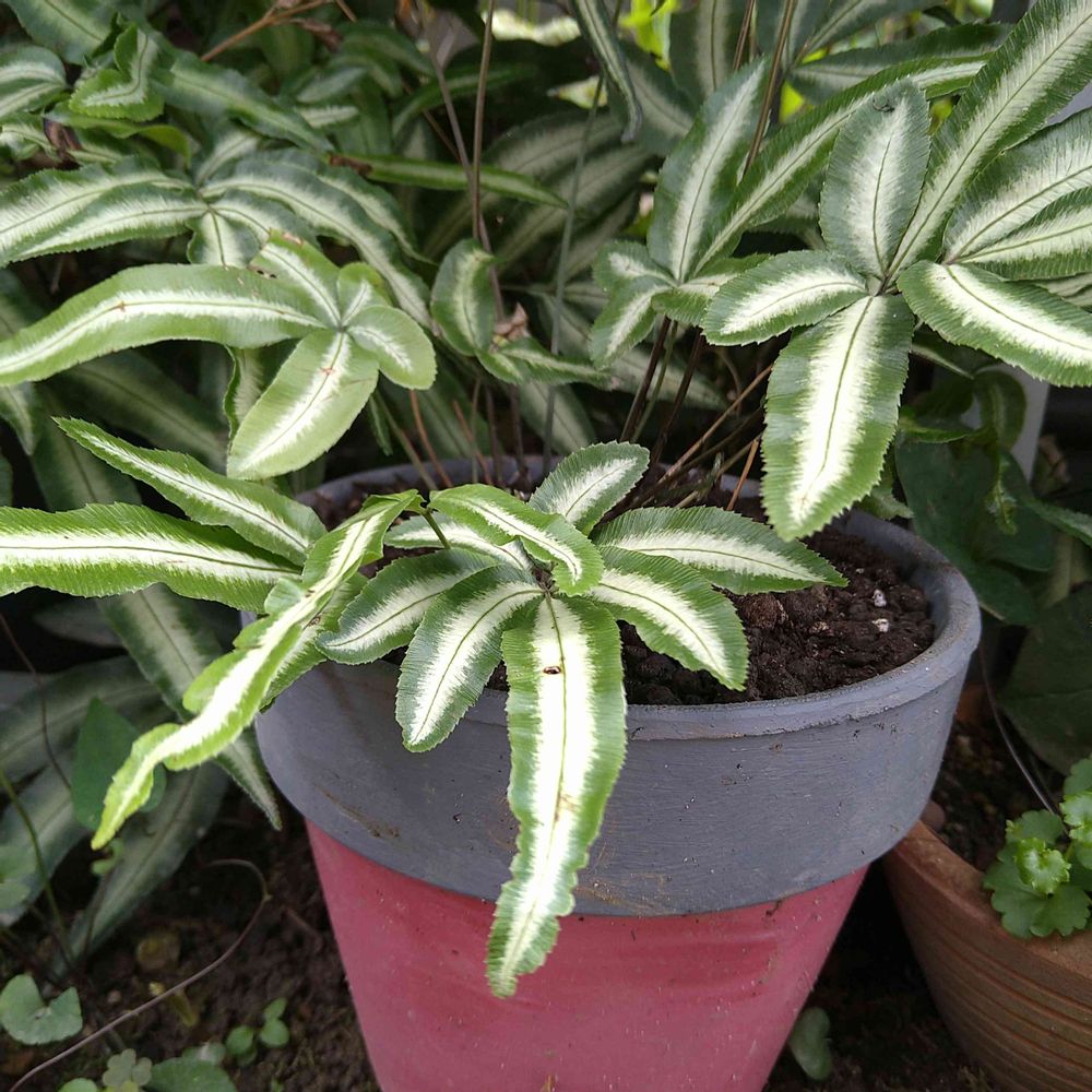 プテリスと言っていたけど、斑入りイノモトソウとも言うんですね~(* ॑꒳ ॑* )🍀