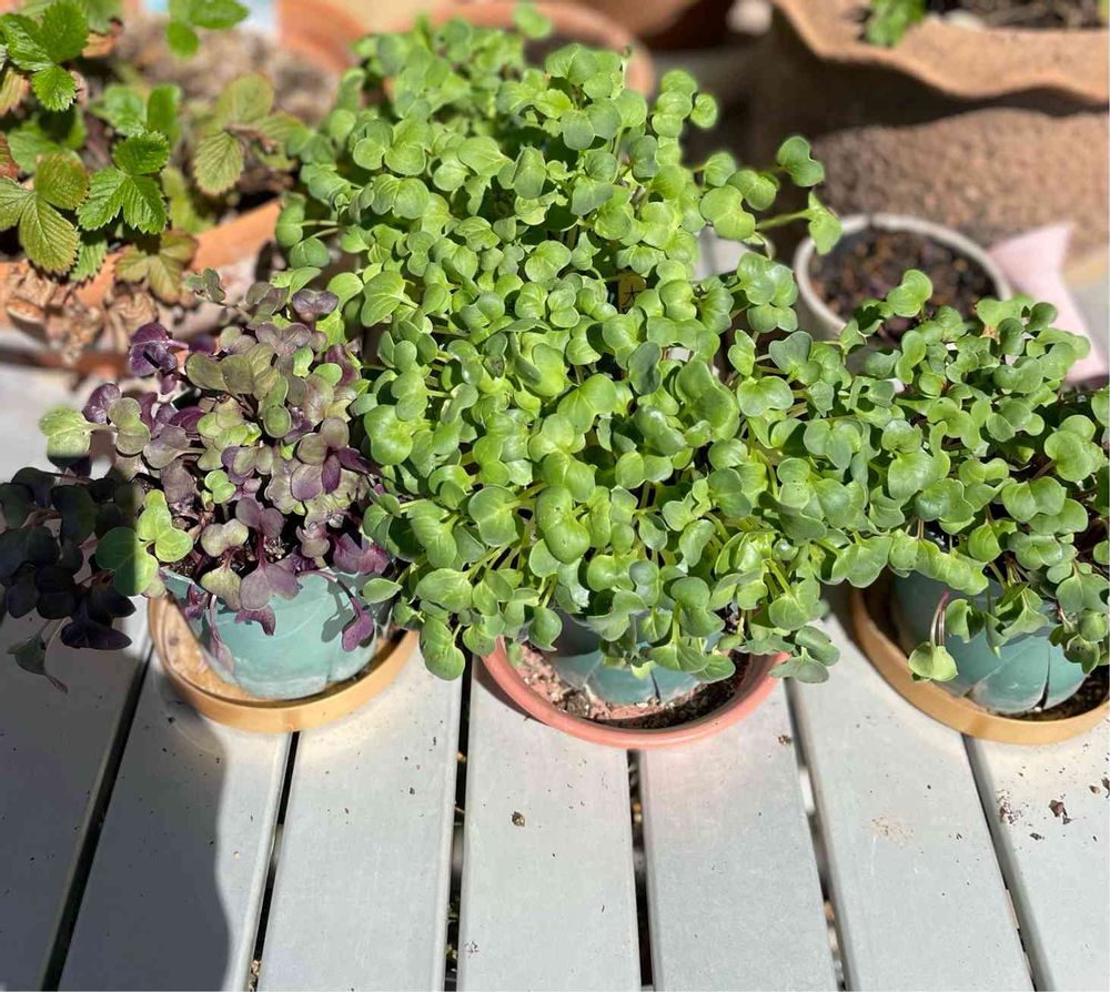 バルコニー/ベランダ,ルビーカイワレ大根栽培,紫カイワレ大根栽培の投稿画像