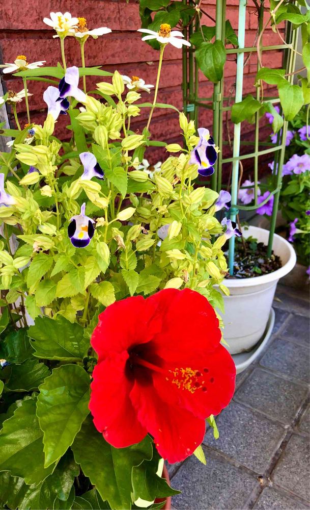 今日はもう1枚、お迎えした寄せ植えには綺麗に初めてのハイビスカスさんが🌺🌺🌺