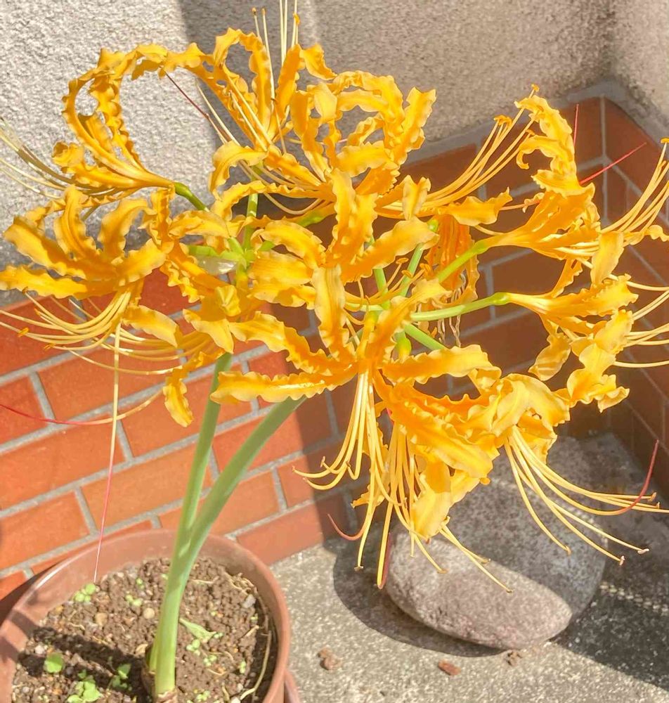 なんか昨日snsで山口の黄色い彼岸花を見たばっかり、まさか今日初めて歩く道で同じ彼岸花と出会う