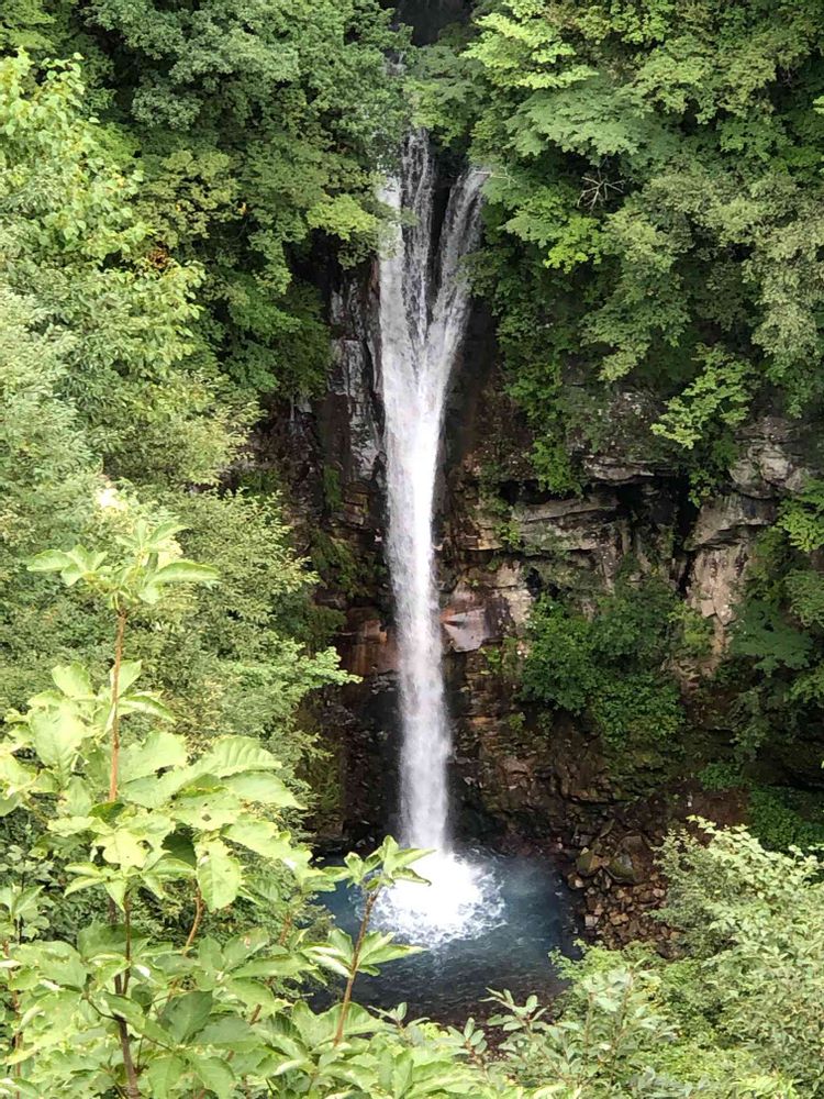 滝壺はエメラルドグリーン、素晴らしい眺めでした♪
