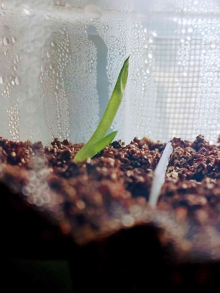 交配してふたつだけできた種のうち、このひとつしか発芽しなかったので、大きな株になるまで、しっかり育てたいところです。