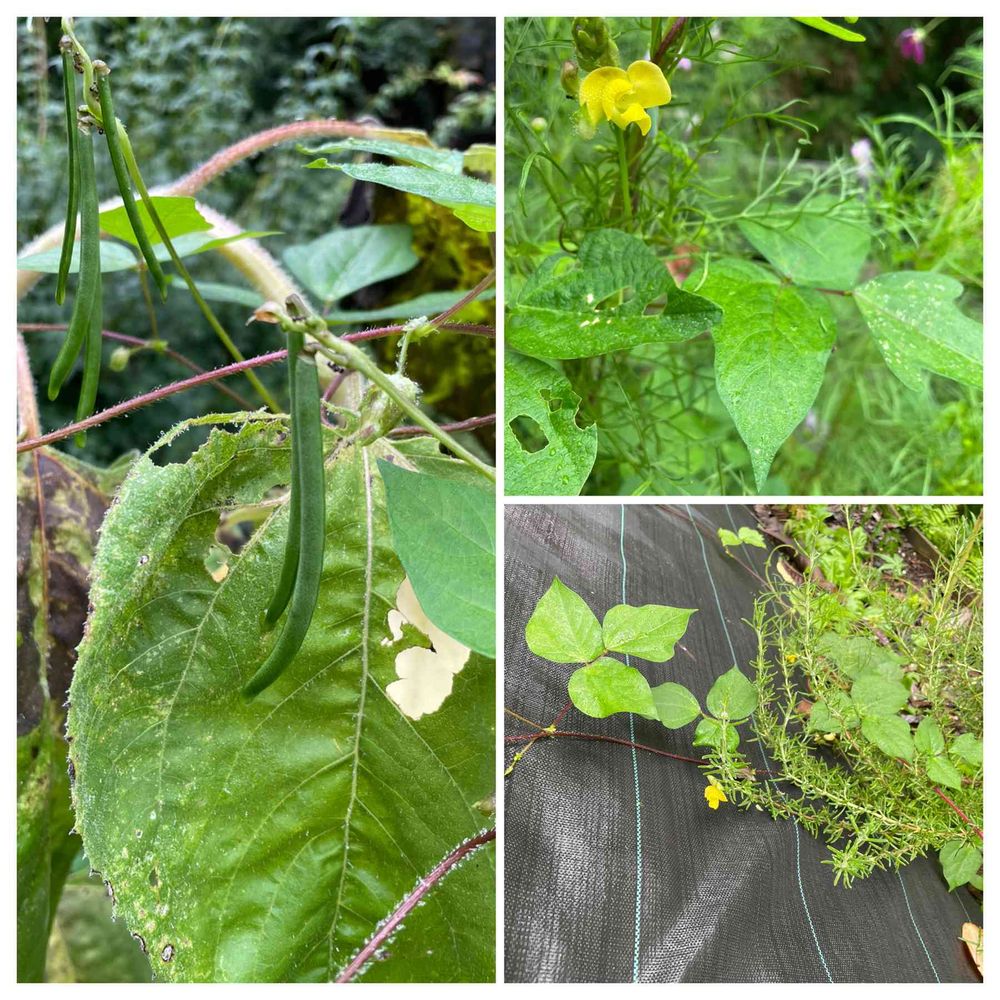 花壇に伸びてきた小豆のような蔓をそのままに、、、。