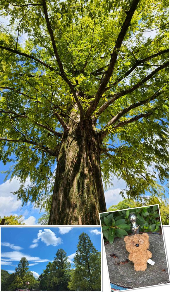 🧸くまちゃんは、お友だちが遊んでいる間、メタセコイア🌲を眺めて待っていたのでしょうね。