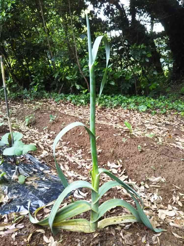 もらったので 庭に植えてみました。玉ねぎ位のジャンボサイズですが匂いは少ないそうです。
