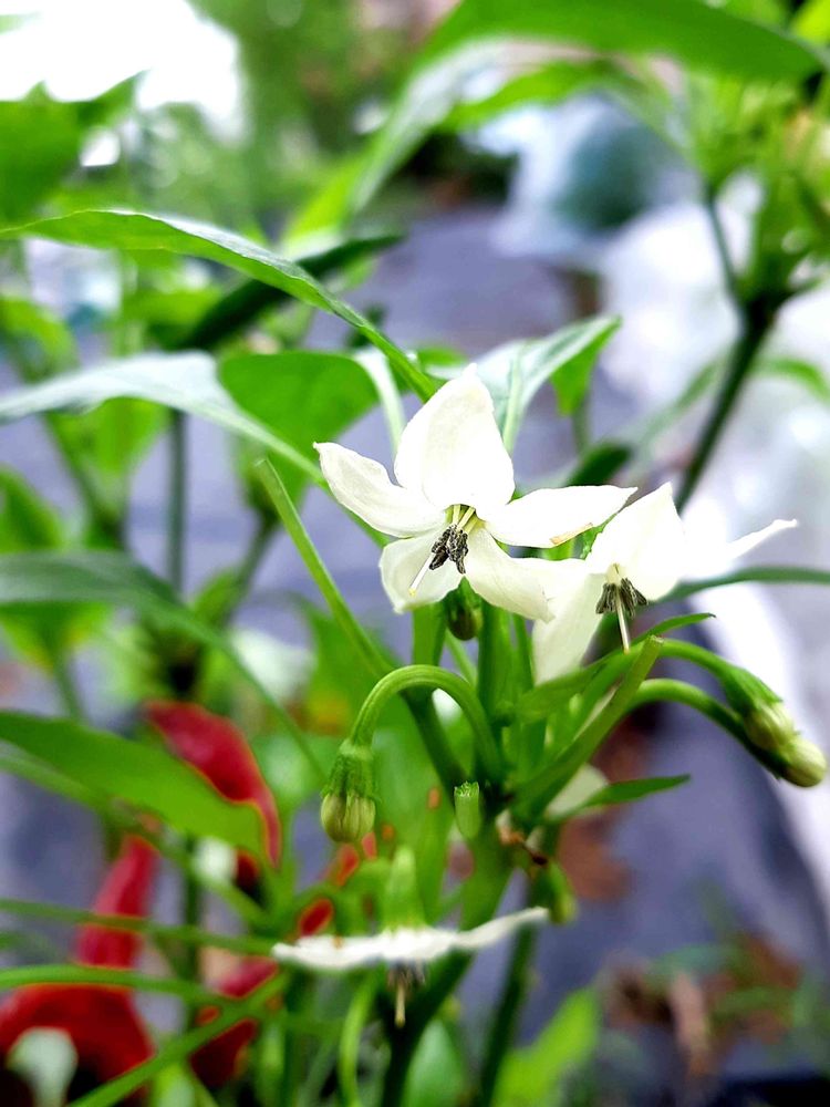 白いお花と真っ赤なトウガラシが並んでる姿は可愛いですよね