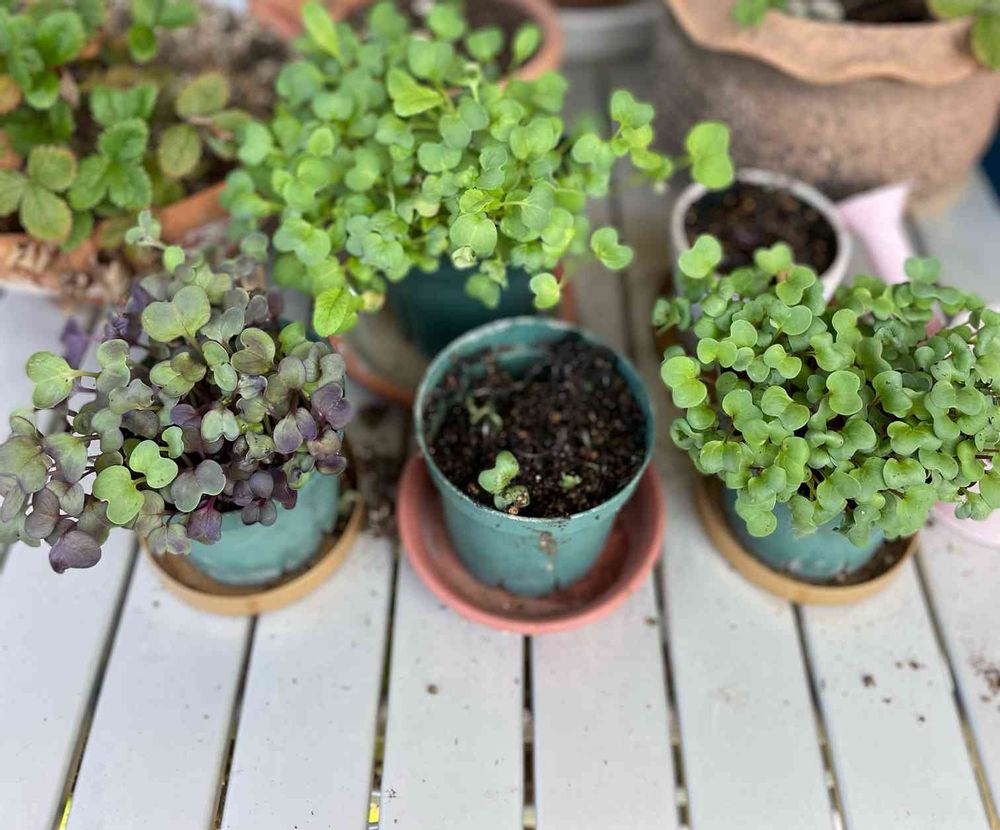 バルコニー/ベランダ,ルビーカイワレ大根栽培,紫カイワレ大根栽培の投稿画像